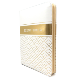Biblia Patmos - Közepes - Fehér aranymintás - Cipzáros- Regiszteres
