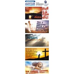 Igényes megjelenésű, fényes, mindkét oldalán nyomott könyvjelző, bibliai idézetekkel, a Patmos Recor..